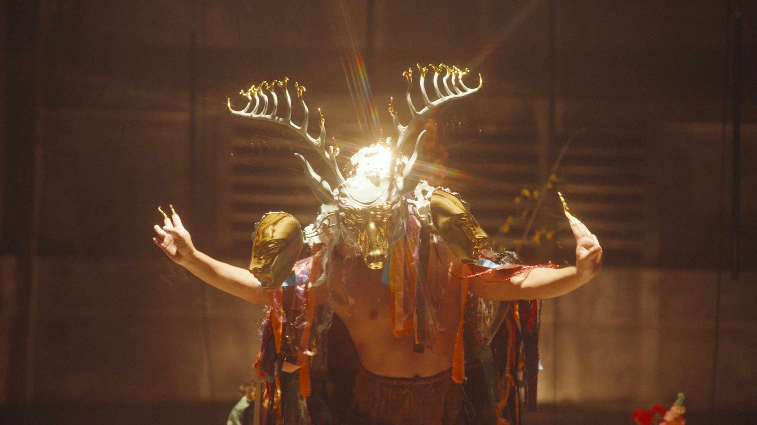 This multi-channel film and sculpture installation is a modern sci-fi retelling of the Buddhist folktale The Nine-Colored Deer from the Jataka Tales. The narrative follows a Thai trans woman who retraces her past life as a wild deer in order to find her true name. When she finds the courage to name herself, she transforms into the Nine-Colored Deer and attains true bliss. Drawing inspiration from the ancient deer frescoes of China’s Mogao Caves and factual history of Thailand’s extinct deer species known as Schomburgk’s deer, The Deer of Nine Colors combines mythology, science-fiction, animal extinction, reincarnation and queer ancestral futurism to create a dreamlike cinema experience of transformation and return.